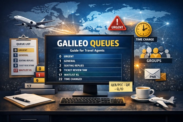 If you work with Galileo GDS queues are something you cannot ignore. They help organize your bookings, which are also known as PNRs and they alert you about any changes. This way nothing gets missed. Lets talk about queues in a way without using complicated ideas.