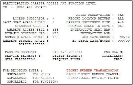 Status codes vary per airline agreement.